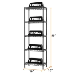 Itopfox 5-Tier Adjustable Wire Shelving Unit For Kitchen, Closet, Laundry, Bathroom, Pantry Organization With Narrow Mesh Gaps, Black