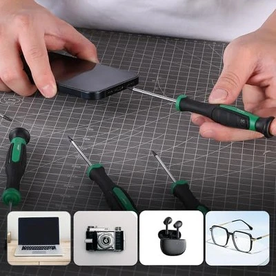 Discover this 12 – piece mini screwdriver set, a must – have for anyone dealing with small screws. Made from heat – treated premium SUP10 steel, it offers excellent hardness and corrosion resistance. The magnetic tips firmly hold screws, eliminating the hassle of dropped screws. The 360 – degree rotatable design allows for easy operation from any angle, especially in tight spaces. It comes in 3 styles and 12 sizes, clearly marked on the handle end for quick identification. The SureGrip handle with a knurled and triangular texture provides large torque for precise work. Whether you’re fixing your smartphone, laptop, or a delicate watch, this set simplifies the process, bringing efficiency and convenience to your DIY projects and professional tasks.
