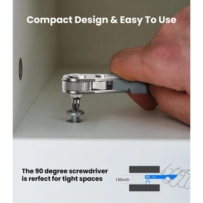 Itopfox 17-in-1 Right Angle Ratcheting Screwdriver Set With Bearing Steel Bits, 36-Tooth Mini Ratchet Wrench, Magnetic Offset ScrewdriveR