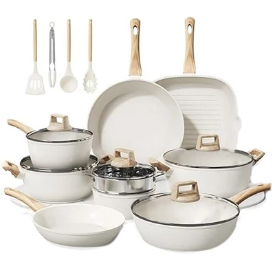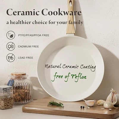 Itopfox 24 Pcs Non Stick Ceramic Cookware Set, Healthy Non Toxic Kitchen Cookware With Large Capacity, Induction Compatible, PFAS Free, Cream White