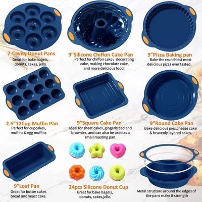 Discover this amazing 31 – piece silicone baking pans set. Crafted from food – grade silicone, it’s flexible and of high quality. The metal – reinforced frame gives the pans more strength, allowing for easy handling in the oven. With a heat – resistant range from – 40 to +446°F (-40 to +230°C), it’s suitable for both oven and freezer use and can be cleaned in the dishwasher. The non – stick surface ensures that food pops out easily and cleaning is a breeze—just soak in warm soapy water. This set includes 7 baking pans and 24 donut molds, almost meeting all your baking needs. It’s perfect for baking various treats like doughnuts, muffins, and cakes. Whether it’s a birthday party, holiday gathering, or wedding, these pans will be a hit with your guests, adding convenience to your baking life.