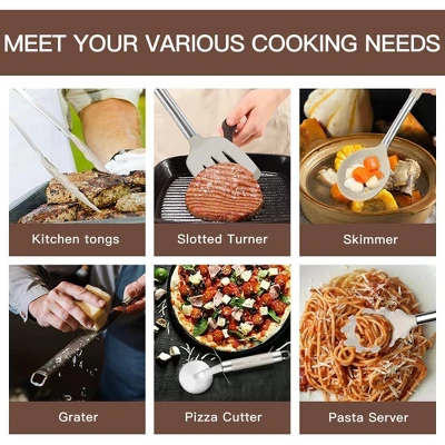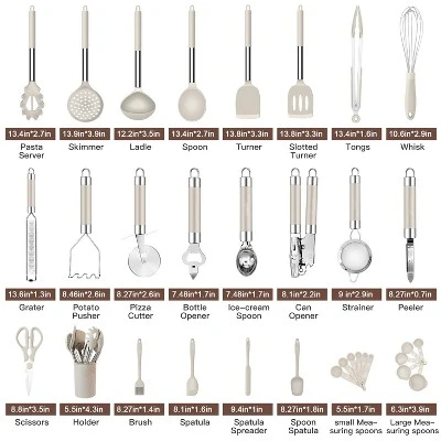 Upgrade your kitchen with this 33 – piece silicone cooking utensils set. The set includes a wide range of tools such as turners, spoons, tongs and more, perfect for all your cooking needs. The utensils are made of high – grade 304 stainless steel handles and durable silicone heads. The stainless steel offers strength and the silicone is non – scratch, making it suitable for use with expensive non – stick cookware. It’s completely plastic – free, BPA and latex – free, ensuring a safe and healthy cooking environment. The set also comes with a holder for easy storage. Whether you’re frying, baking, or making pasta, these utensils are essential for any home cook. They’ll make your cooking process more efficient and enjoyable, and help you create delicious meals with ease.
