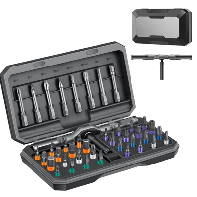 Discover this 42 – in – 1 magnetic screwdriver set, a must – have for all your repair and DIY needs. It includes 8 pcs 45mm long and 32 pcs 25mm short screwdriver heads in various types. The ergonomic T – handle offers a comfortable grip, while the ratchet screwdriver allows for easy mode switching between forward, backward, and locking. The T – shaped handle is made of aluminum alloy, and the drill bit is S2 alloy steel, ensuring durability. The strong magnetization of the drill bits guarantees easy replacement and firm screw – holding. This set comes with a portable storage box, so you can take it with you anywhere. It’s perfect for furniture assembly, household appliance maintenance, bicycle fixing, and DIY projects, making your repair tasks a breeze and adding convenience to your life.