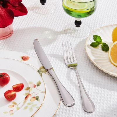 Upgrade your dining experience with this 60 – piece silverware set. Ideal for 12 people, it includes 12 dinner forks, salad forks, dinner knives, dinner spoons, and teaspoons. Crafted from 18/10 stainless steel, it boasts strong anti – corrosion and rust resistance, ensuring long – lasting durability. The classic and timeless design, with unique shapes and smooth lines, can be paired seamlessly with your existing flatware. Thanks to multiple hand – polishing processes, it retains a shiny luster, making it a great gift option. Each utensil has the perfect size and weight, and the pure hand – polishing gives it a smooth grip. Whether it’s for daily home use, a hotel setting, a wedding, or a party, this silverware set is a versatile addition to your tableware collection, complementing plates, bowls, and other items.