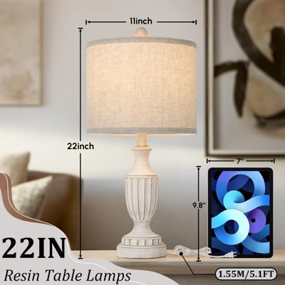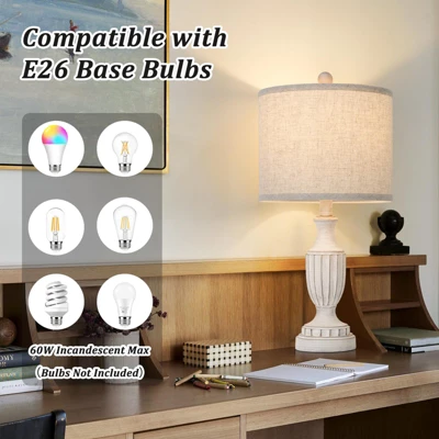 Enhance your living space with this set of two farmhouse table lamps. The lamps feature resin bases hand – brushed to a unique antique white color, paired with cream linen lampshades, bringing a modern rustic charm to any corner of your home. They are perfect for living rooms, bedrooms, and home offices. With a thick linen shade, they offer eye – protection by minimizing harsh shadows and glare. These lamps are compatible with various bulbs like LED, incandescent, and smart bulbs (bulbs not included), allowing you to customize the lighting ambience. Assembly is a breeze as all necessary parts come with a detailed manual and no tools are required. They are versatile for different decor styles and make a great gift. Enjoy a practical and stylish lighting solution with these lamps.