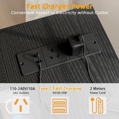 Itopfox L-Shaped Computer Desk With Power Outlets, Reversible Shelves, Gaming & Study Writing Table For Home Office, Bedroom, Living Room, Black