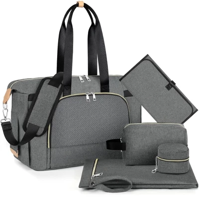 Discover the ultimate diaper bag tote! This all – in – one set includes a large mommy bag (16.5*14*9.4 in) and 6 other practical accessories. With its large capacity and multi – pocket design, it can hold all baby and mom’s essentials. The high – quality water – resistant nylon material ensures durability and easy cleaning. It features an adjustable padded shoulder strap, stroller straps, and a luggage sleeve for convenient carry. Whether you’re traveling, going to the hospital, or just out for the day, this bag is a must – have. Its multiple pockets make organizing a snap, and its sleek design makes it suitable for various occasions. It’s not only a great diaper bag but also a versatile tote for moms. Ideal as a gift for new parents, it brings convenience to your daily life with your baby.