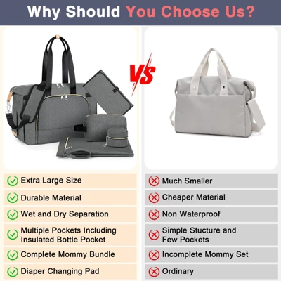 - Gift for New Parents: Versatile and suitable as a maternity, hospital, weekender, or gym bag. Multiple pockets make organizing baby essentials a breeze, and its sleek design complements any outfit.