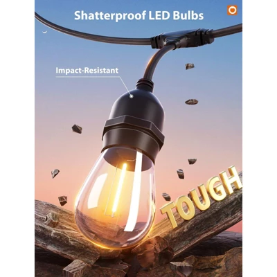 Itopfox LED Outdoor String Lights With Vintage Shatterproof Bulbs, Commercial Grade Weatherproof Strand For Patio Garden Decoration
