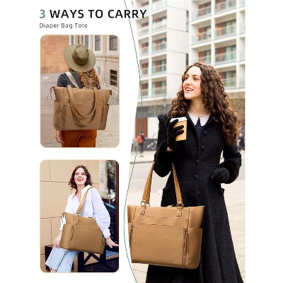 - 14 Pockets for Versatile Storage: Weighing only 2.89 lbs, it offers 8 interior and 5 exterior pockets. There are 2 large insulated pockets, 2 bottle pockets, a padded 15″ laptop pocket, a detachable changing pad, and a hidden anti – theft pocket.