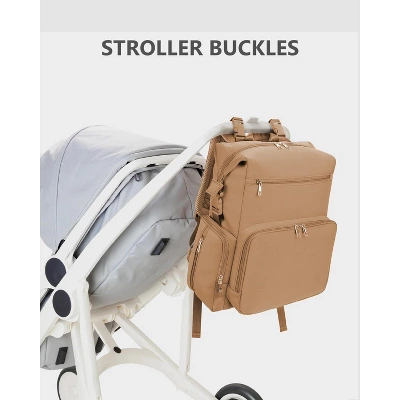 - Large Storage Capacity: Measuring 18″L x 14″W x 6″H, this diaper backpack offers ample space for baby essentials and parents’ items. It features 10 pockets for organized storage.