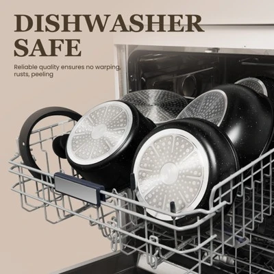 Discover the ultimate cookware set that combines functionality and convenience. This non-toxic cookware features a coating free from harmful chemicals, ensuring a safe cooking environment for your family. The premium non-stick coating allows food to release effortlessly, reducing the need for oil and making cleanup a breeze. It’s compatible with all stovetops, including induction, and is oven-safe, giving you more cooking options. The detachable handles not only save space in your kitchen but also provide a secure grip. With a full pack of pots, pans, lids, utensils, and protectors, it has everything you need for cooking. It’s easy to maintain and is a practical gift for various occasions. Whether you’re cooking for your family or living in a small space, this cookware set is a must-have.