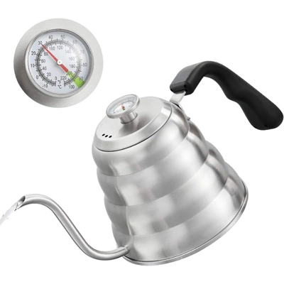 Discover the perfect pour – over coffee kettle for your daily brewing needs! This 40 – fl – oz kettle is made of premium stainless steel, which is BPA – free and rust – free, ensuring long – term and safe use. It features a slender spout and an ergonomic handle, giving you ultimate control over the pouring process. Whether you’re making pour – over coffee, French press coffee, or just a cup of tea, this kettle is your ideal choice. It works on various heat sources like gas, IH ranges, and electric stoves. The built – in thermometer allows you to brew at the optimal temperature of 195 – 205°F, extracting the full flavors and aromas from your coffee beans. Included in the package is a user guide to help you get started. With this kettle, you can easily enjoy a perfect cup of coffee or tea every day.