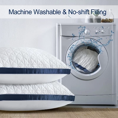 Indulge in a luxurious sleep experience with this set of 2 queen – sized pillows. Crafted to 5 – star hotel quality standards, they are perfect for back, stomach, or side sleepers. The filling is a combination of 3D and 7D microfiber, offering both softness and support. The front side features quilted embossing with extra filling, while the other side is normal, giving you a choice. The double – piping with a sapphire blue gusseted band not only looks great but also helps maintain the pillow’s shape. These pillows are machine – washable with no – shift filling, making home care a breeze. Certified by Oeko – tex, the breathable and skin – friendly cover ensures a comfortable sleep for everyone. They come vacuum – sealed and will fluff up after opening. Regular fluffing will keep them in top shape, providing you with a comfortable and restful sleep night after night. Ideal for gifting or personal use, these pillows are a must – have for a better sleep.