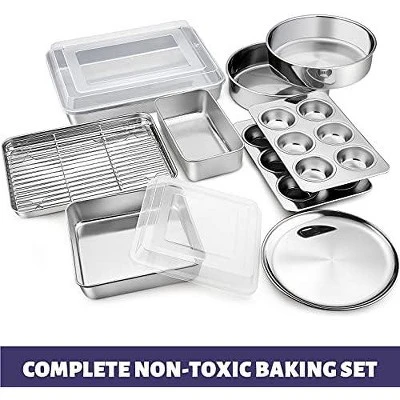 This 12-piece baking set is a must – have for home bakers. It includes a variety of baking tools such as lasagna pans, baking sheets, cake pans, and more. Made from food – graded stainless steel and plastic, these non – toxic tools are safe for your food. They’re also lightweight and unbreakable compared to glass. The pans come with lids that keep food fresh and make it easy to transport. The baking sheet works with a rack for even and fast baking, separating meat from sauce. Most tools are oven and dishwasher safe (except the lid). This set is perfect for baking cakes, bread, muffins, as well as roasting meat and vegetables. It’s great for large – scale baking and makes an excellent gift for family and friends on special occasions. With this set, you can enjoy convenient and high – quality baking at home.