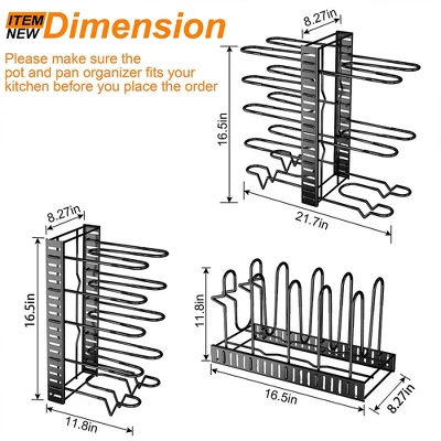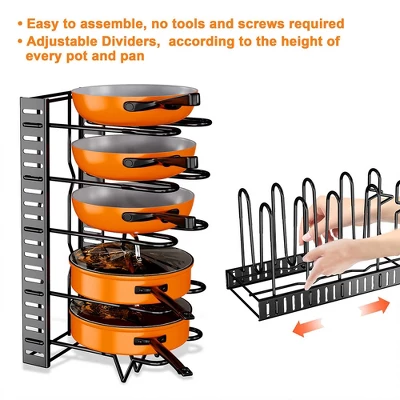 Itopfox Upgraded Pots And Pans Organizer Rack For Kitchen Storage With 8 Tiers & 3 DIY Methods, Rust-proof & Anti-slip