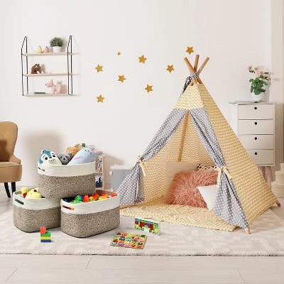 Discover these multi – purpose storage baskets! They are crafted from high – quality cotton rope, which is nature, safe, and durable. These baskets are ideal for storing a wide range of items, from stuffed animals to baby diapers. With a stylish design, they can fit into various rooms such as classrooms, baby rooms, and living rooms. The unique small rectangle shape comes with a foldable design and separate built – in 3 – heeled braided rope handles, making them easy to carry. They arrive folded and can be reshaped by filling with towels or clothes for a few days or by using steaming or ironing. They are especially practical for children to pick up toys. These baskets are a must – have for efficient home organization, bringing great convenience to your daily life.